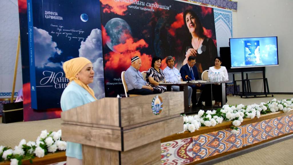 Sirdaryo viloyatining markazi — Guliston shahridagi Halima Xudoyberdiyeva nomidagi ijod maktabida shunday samimiy ruhdagi uchrashuv — yozuvchi va tarjimon, O‘zbekiston Yozuvchilar uyushmasi a’zosi Dilfuza Qarshiboyevaning “Jannatdagi sirdoshim” nomli yangi kitobining taqdimoti bo‘lib o‘tdi.
