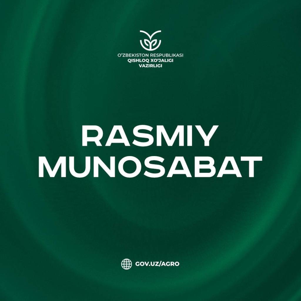 Шунингдек, баёнотда Қишлоқ хўжалиги вазирлиги тадбиркорлар манфаатларини ҳурмат қилиши, улар билан очиқ мулоқотга тайёр экани маълум қилинган.