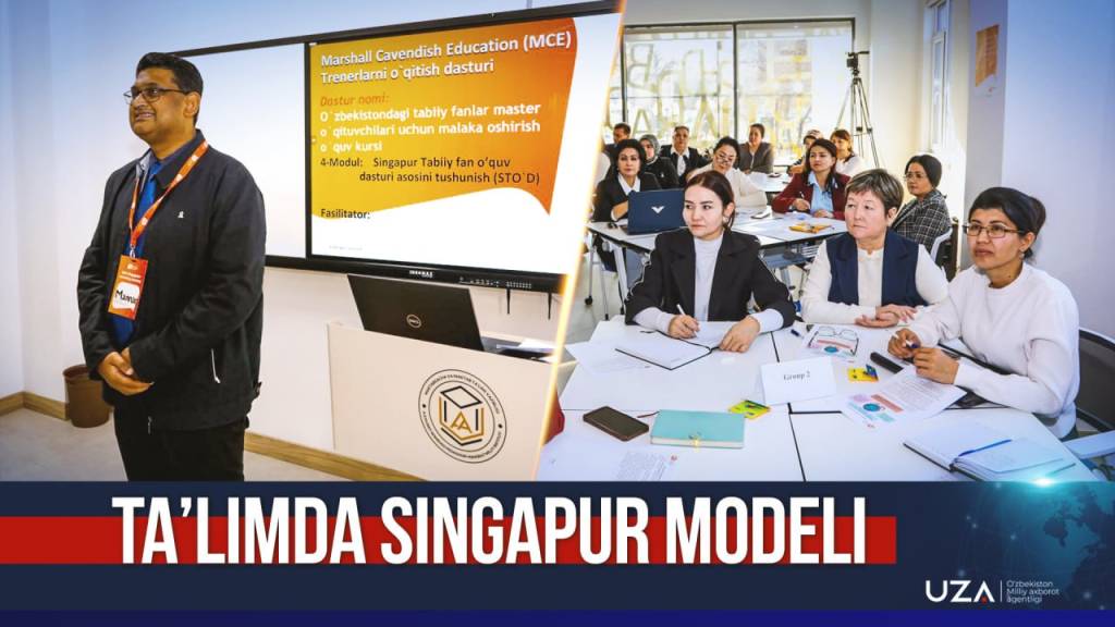 Bugun Abdulla Avloniy nomidagi pedagogik mahorat milliy institutida Singapurning “Marshall Cavendish” ta’lim tashkiloti bilan hamkorlikda murabbiylar uchun o‘quv mashg‘uloti boshlandi. 10 yanvargacha davom etadigan mashg‘ulotlar o‘quvchilarda PISA - o‘qish, matematika va tabiiy fanlar bo‘yicha bilim va ko‘nikmani baholaydigan xalqaro dasturga asoslangan mahoratni shakllantirishga qaratilgan. Shu orqali yoshlarning ilmiy savodxonligini oshiradigan ilg‘or uslub chuqur o‘zlashtiriladi. Seminarda qatnashganlar keyinchalik boshqa hamkasblarini mazkur qo‘llanma bilan tanishtirib, yangi bilimlarini amaliyotda keng miqyosda qo‘llaydi.