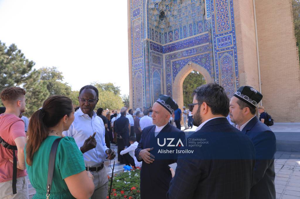 Shundan so‘ng, forum ishtirokchilari ajdodlarimizning boy madaniy merosi — Amir Temur maqbarasi, Registon maydoni, Shohi Zinda majmuasi hamda ulug‘ muhaddis Imom Buxoriy qadamjosida amalga oshirilayotgan ulkan bunyodkorlik ishlari bilan yaqindan tanishdi.