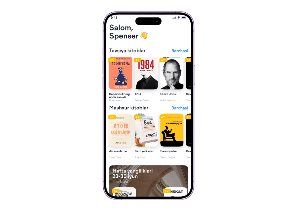 – Qalin muqovali kitoblarni yonimda ko‘tarib yurish noqulay bo‘lgani sababli shu platformani yaratdim. Qalin kitoblarni har doim yoningizda olib yurish qiyin, telefon esa doimo biz bilan. Mutolaaga kelsak, ko‘proq qarashlarimni o‘zgartirib yuboradigan badiiy kitoblarni o‘qiyman. “Choliqushi”, “Raqamli qal’a, «1984» kitoblari juda yoqadi.