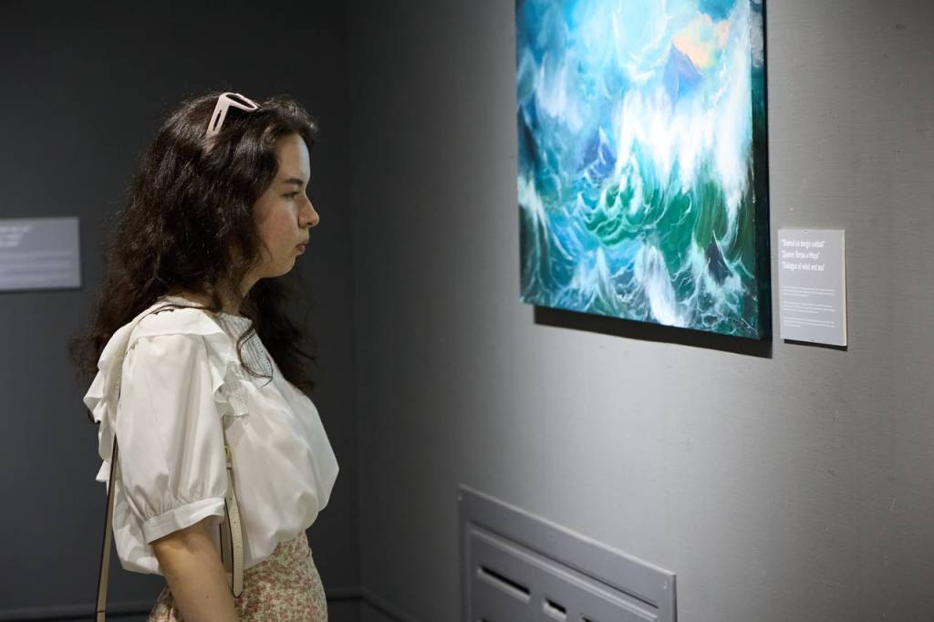 Ko‘rgazmada ko‘zi ojiz va zaif ko‘ruvchi bolalar taassurotlari asosida sun’iy intellekt yordamida yaratilgan 20 ta noyob kartina namoyish etildi. Qayd etilishicha, psixologlar va jurnalistlar bolalarning hikoyalari bilan yaratilgan rasmlarni sinchkovlik bilan tekshirishdi va ma’qullashdi. Shundan so‘ng kartinalar rassomlar tomonidan 20 ta asar ko‘rinishiga keltirildi.