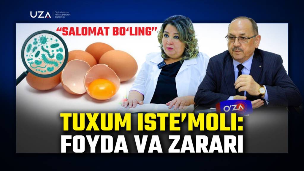 <iframe width="650" height="420" src="https://www.youtube.com/embed/A9GN5uneWBI" title="Tuxum isteʼmoli: foyda va zarari" frameborder="0" allow="accelerometer; autoplay; clipboard-write; encrypted-media; gyroscope; picture-in-picture; web-share" referrerpolicy="strict-origin-when-cross-origin" allowfullscreen></iframe>M.Eshmirzayeva, D.Yakubov, A.Sodiqov, O‘zA