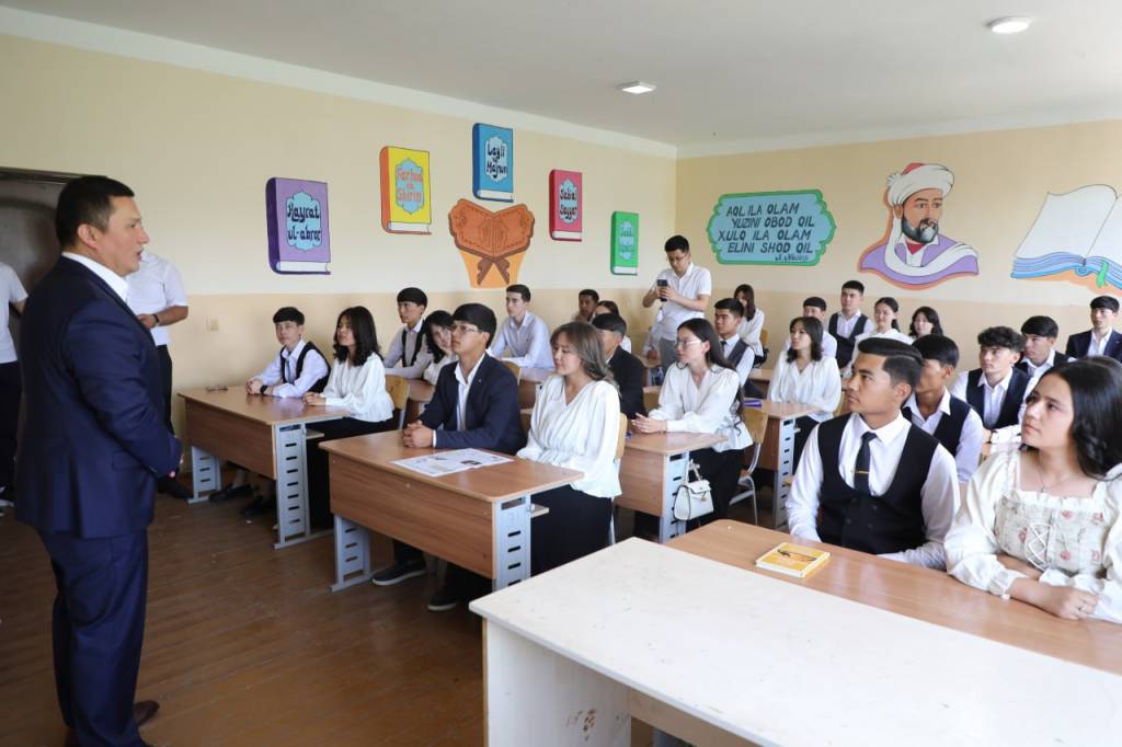 Навоий давлат университети ректори, иқтисодиёт фанлари доктори, профессор Муҳиддин Калонов ўзи таълим олган илм масканига ташриф буюрди.