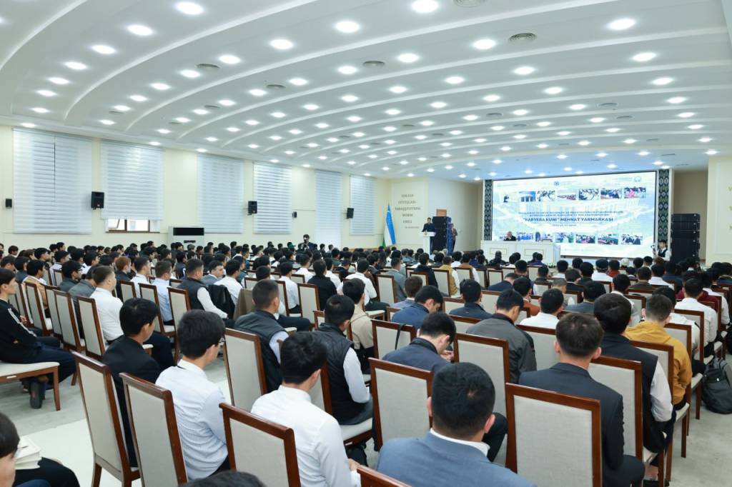 Yarmarka doirasida viloyatdagi yirik sanoat korxonalari vakillari ishtirok etib, talabalarga o‘z korxonalari faoliyati haqida so‘zlab berdi.