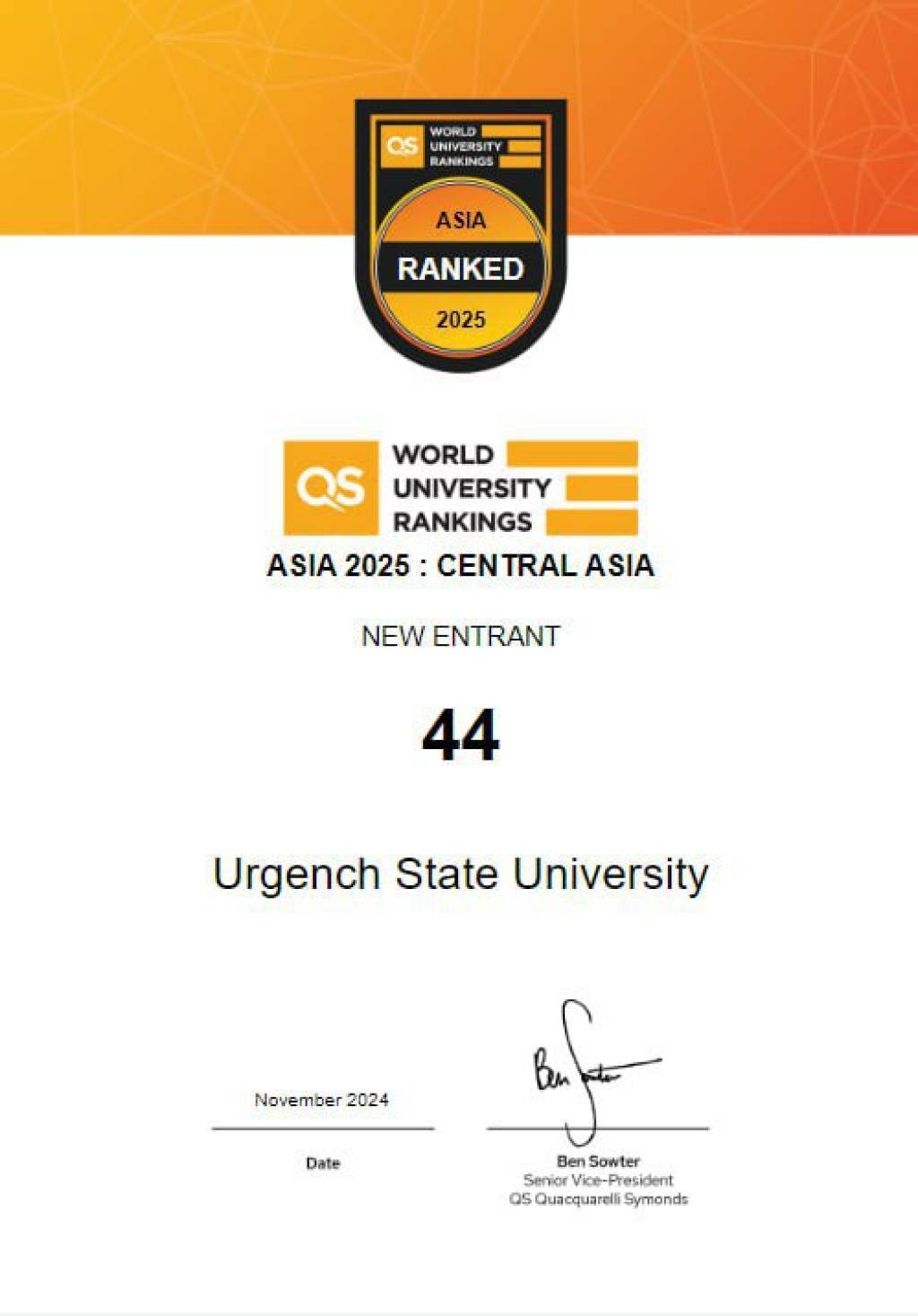 Urganch davlat universitetining dunyo universitetlari reytingidagi o‘sishi O‘zbekiston ta’lim tizimi xalqaro standartlarga moslashib, raqobatbardoshligi oshib borayotganidan dalolatdir.