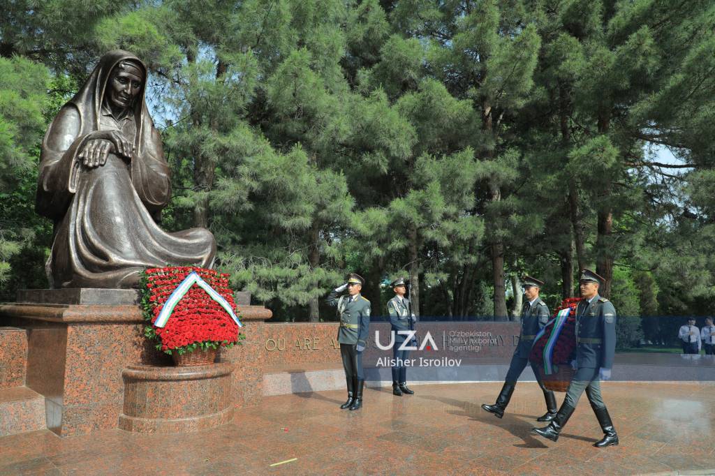 Xotira va qadrlash kuni va Ikkinchi jahon urushidagi g‘alabaning 80 yilligi munosabati bilan Samarqand shahridagi Xotira maydonida Motamsaro ona haykali poyiga gullar qo‘yildi.