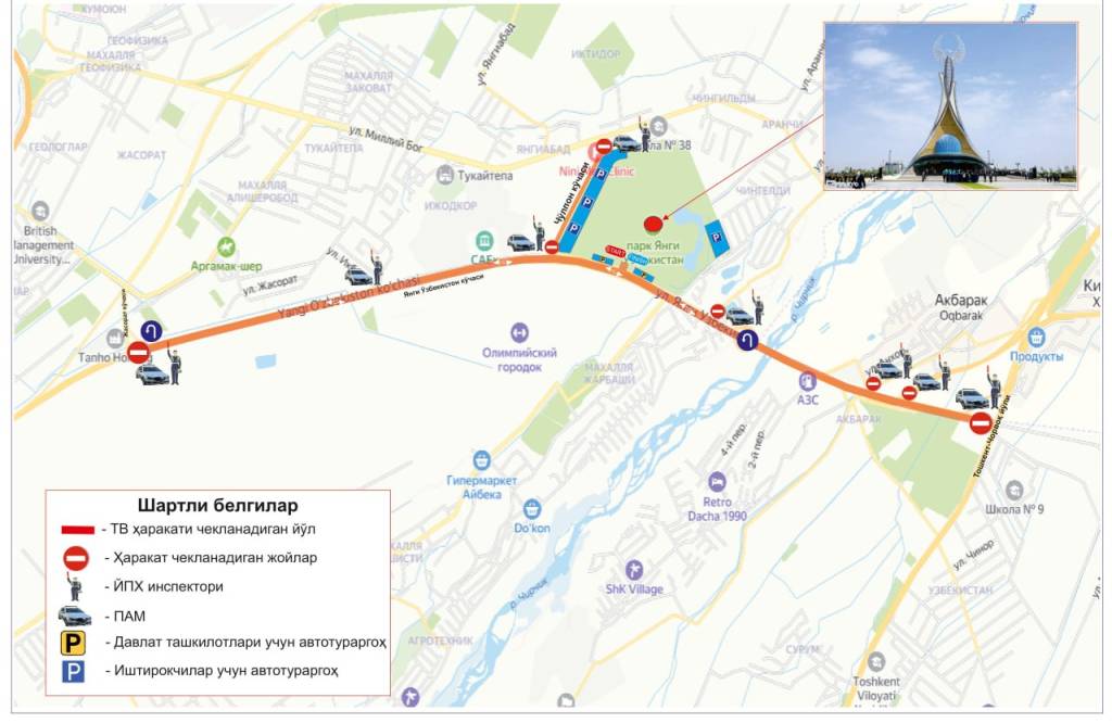 Shu munosabat bilan 2025 yilning 13 aprel kuni tungi soat 00:00 dan kunduzgi soat 16:00 ga qadar “Yangi O‘zbekiston” ko‘chasida hamda unga tutash ko‘chalarda avtomobillar harakati vaqtincha cheklanadi.