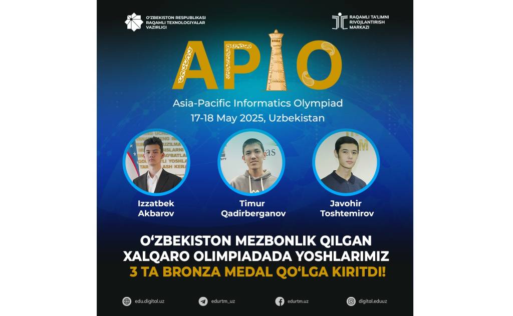 Osiyo-Tinch okeani mintaqasi informatika olimpiadasi (APIO 2025) ning yakuniy natijalari e’lon qilindi.