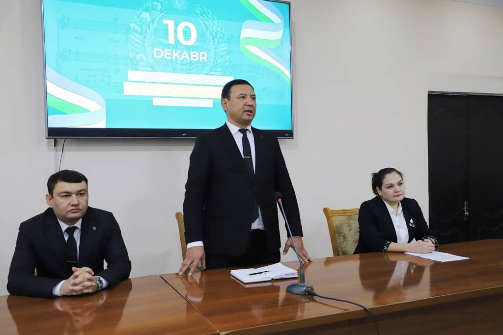 Uchrashuvda so‘zga chiqqan professor-o‘qituvchilar, talaba-yoshlar jahon davlatlari madhiyalarining paydo bo‘lish tarixi, bir-biridan farqli jihatlari, O‘zbekiston Respublikasi davlat madhiyasining shakllanish tarixi, bugungi kundagi ahamiyati, bu borada qonunchilikda belgilangan me’yorlarning mazmuni haqida ishtirokchilarga keng ma’lumot berdi. Shuningdek, davlat madhiyasi yoshlarda vatanga muhabbat, boy tariximizga, milliy o‘zligimizga chuqur hurmatni shakllantirishda, farzandlarimizning har tomonlama barkamol va yetuk insonlar bo‘lib yetishishida katta ahamiyatga ega ekani ta’kidlandi.