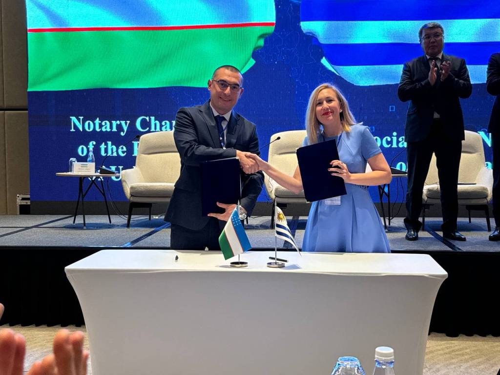 Anjuman so‘nggida O‘zbekiston Notarial palatasi hamda Meksika, Portugaliya va Urugvay notariuslari assotsiatsiyalari o‘rtasida hamkorlik memorandumlari imzolandi.