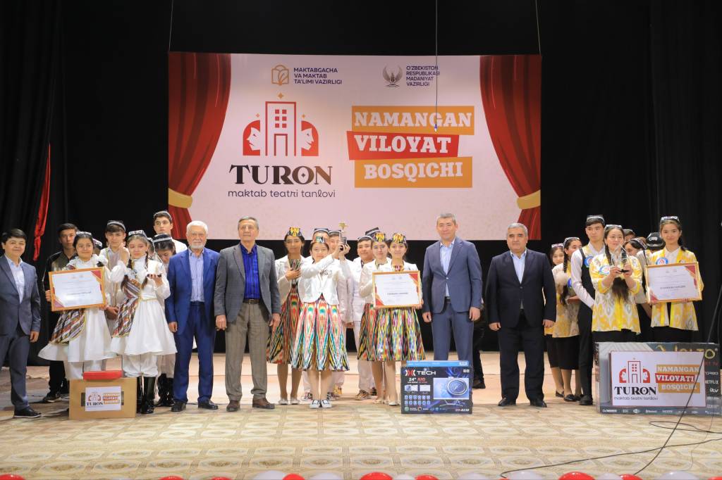 Murosasiz va qizg‘in hayajonli damlarga boy tarzda kechgan tanlovning yakuniy natijalariga ko‘ra, Uchqo‘rg‘on tumanidagi 39-sonli umumta’lim maktabining “Yangi yulduzlar” teatr jamoasi g‘oliblikni qo‘lga kiritib, tanlovning mamlakat bosqichiga yo‘llanmani qo‘lga kiritdi. Ikkinchi o‘rinni Namangan shahridagi 1-sonli davlat ixtisoslashtirilgan umumta’lim maktabining “Namangan yulduzlari” jamoasi egalladi. Uchinchi o‘rin To‘raqo‘rg‘on tumanidagi 22-sonli umumta’lim maktabining “Ibrat” jamoasiga nasib etdi.