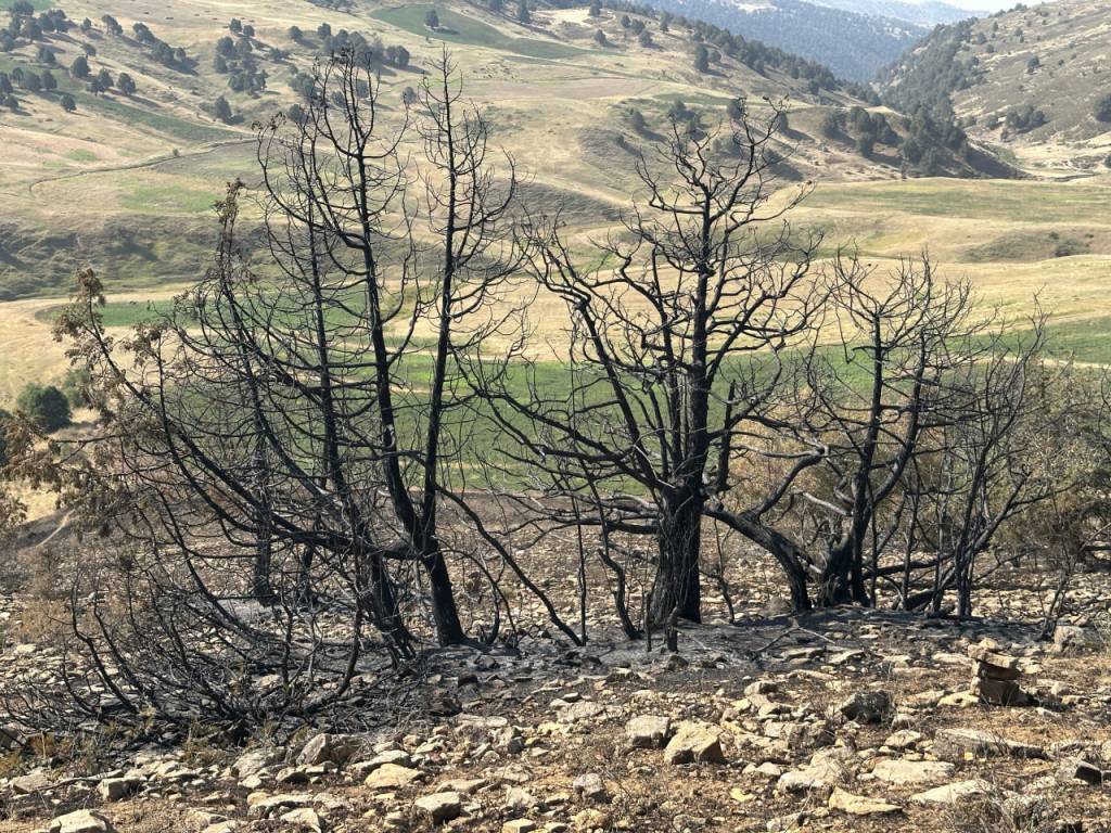 Olis va mashaqqatli tog‘ yo‘lidan manzilga yetib keldik. Murojaatchi Fayziddin Xushvaqtov bizga yo‘l ko‘rsatib bordi. Haqiqatda yong‘in u yerdagi ko‘plab o‘simlik dunyosiga jiddiy zarar yetkazgan va kattagina hududni qoplagan. Bir qarashda u yerdagi manzara o‘lim vodiysini eslatadi. Fayziddin akaning aytishicha, eng yomoni yonib kulga aylangan daraxtlar qayta ko‘karmaydi.