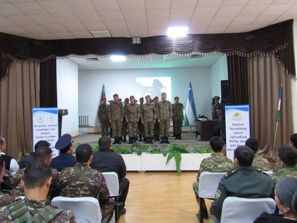 Ma’lumot uchun, O‘zbekiston Respublikasi Qurolli kuchlari harbiy xizmatchilarning ma’naviy-axloqiy tayyorgarlik va jangovor ruhini yanada oshirish, ularda milliy g‘urur va ma’naviy fazilatlarga tayanadigan barqaror axloqiy-ruhiy holatini ta’minlash, yuksak jangovar ruhni tarbiyalash hamda ularda yot g‘oyalarga qarshi mafkuraviy immunitetni mustahkamlash maqsadida “Yuksak jangovar ruh – askarning yengilmas kuchi, armiyaning qudratidir!” degan konseptual g‘oya asosida harbiy xizmatchilar, havaskor va professional ijodkorlar o‘rtasida “Qo‘shinlar madhiyasi”, “Eng jangovar qo‘shiq” va “Eng jangovar chaqiriq va shior” respublika tanlovi e’lon qilingan edi.