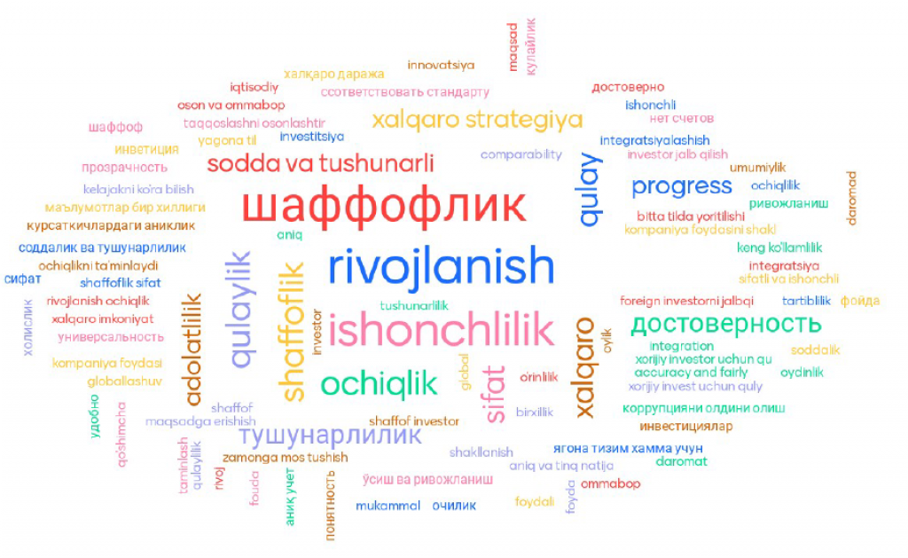 Сўровнома қатнашчилари томонидан МҲХСнинг қўлланишидаги энг муҳим жиҳатлари сифатида шаффофлик, ривожланиш ва ишончлилик кўрсатиб ўтилди.
