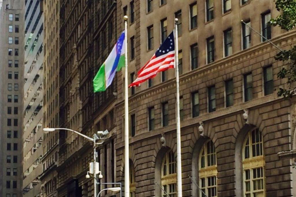 Америка Қўшма Штатлари Ўзбекистон Республикаси мустақиллигини тан олган биринчи давлатлардан яна бири. Дипломатик алоқалар 1992 йил 19 февралда ўрнатилган ва Ўзбекистон Республикасининг Америка Қўшма Штатларидаги биринчи элчихонаси 1993 йил февраль ойида очилган. Шу вақтдан бошлаб Ўзбекистон байроғи АҚШ ҳудудида ҳам ҳилпирай бошлади.