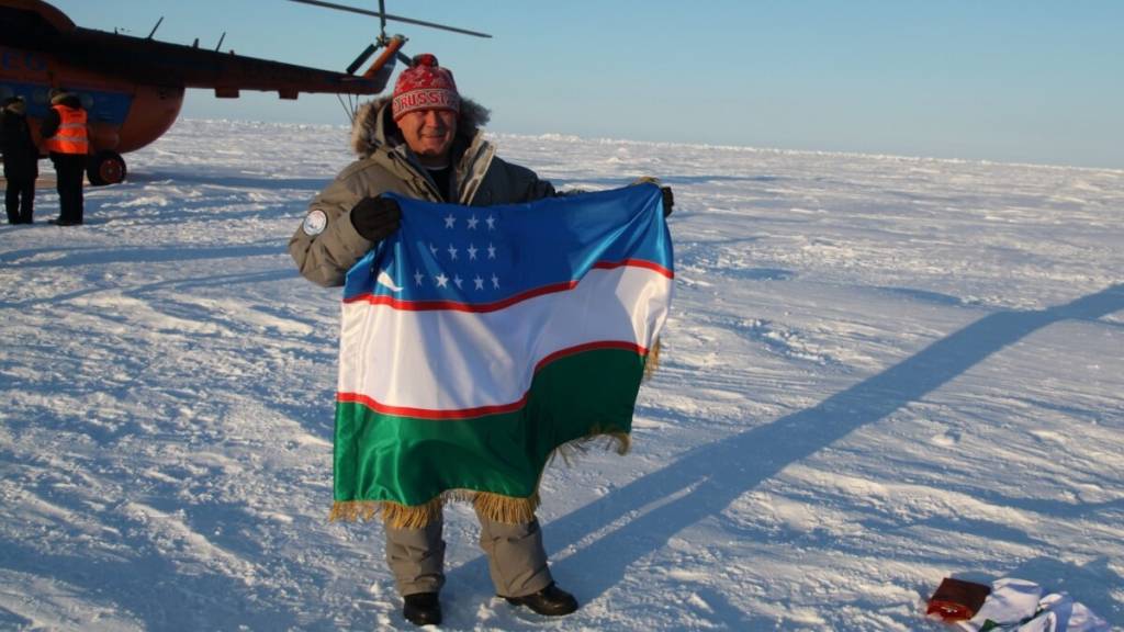 Дунёнинг 372-космонавти, Россиянинг саксон саккизинчи ва биринчи ўзбек космонавти Солижон Шарипов космосга 1998 йилнинг 23 январидан 31 январигача қилган илк парвози давомида Ўзбекистон Давлат байроғини Шимолий қутбга ўрнатди. У Ўзбекистон Республикасининг «Буюк хизматлари учун» ордени билан тақдирланди.
