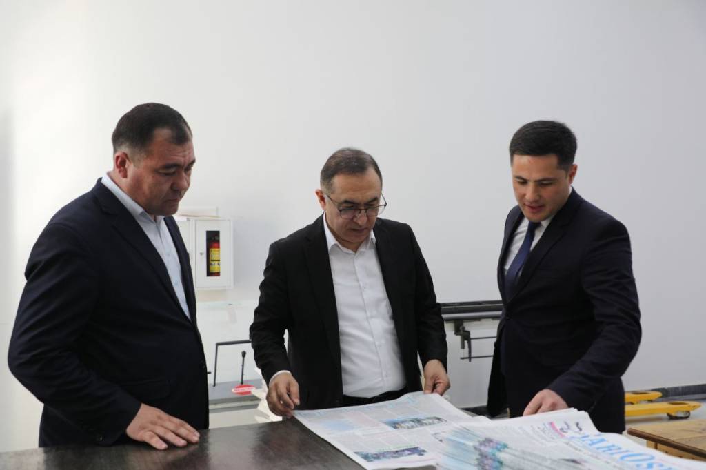 Агентлик раҳбари вилоят телерадиокомпаниясида жонли эфир ва телестудияларда кўрсатувларнинг ёзиб олинишини кузатди. “Ишонч” нодавлат телерадиокомпанияси фаолияти, телестудиялардаги шароитлар, мавжуд имкониятлар, кўрсатув ва лавҳаларни тайёрлаш ҳамда эфир жараёнларини кўздан кечирди. Халқ депутатлари вилоят Кенгаши ҳамда вилоят ҳокимлиги муассислигидаги “Сурхон тонги” ва “Заря Сурхана” газеталари бирлашган таҳририятида газеталарнинг чиқарилган сонлари, чоп этилаётган хабар ва материалларнинг мазмун-моҳияти билан қизиқди. Бу ерда барпо этилган янги босмахонада газеталарнинг чоп этилиши билан танишиб, “Яшил макон” умуммиллий лойиҳаси доирасида “Сурхон тонги” ва “Заря Сурхана” газеталари бирлашган таҳририятида дарахт кўчати ўтқазди.