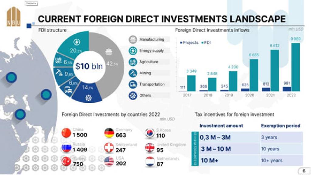 Бюрократик тўсиқлар қисқартирилди бизнесни тартибга солиш бўйича давлатнинг 500 дан ортиқ функциялари, шунингдек 132 га яқин лицензия ва рухсатномалар бекор қилинди. Лойиҳани бошлашдан тортиб, уни "битта ойна" тамойили бўйича ишга туширишгача бўлган жараён вужудга келди, қисқа қилиб айтганда, Инвесторлар билан ишлашнинг яхлит тизими жорий этилди. Натижада сўнгги 6 йил ичида тўғридан-тўғри хорижий инвестициялар 3 бараварга ошиб, 10 миллиард долларга етди.