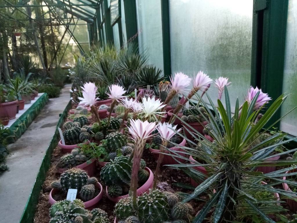 Биринчи бўлимда асосан кактуслар бўлиб, уларнинг 100 зиёд тури парваришланади. Кактусларнинг 20-30 йилдан буён ўсиб келаётган турлари ҳам бор. Бунга мисол, Кактус Ситирус салкам 30 йилдан буён парвариш қилиб келинмоқда. Шуни алоҳида таъкидлаш жоиз, кактуслар жуда секин ўсадиган ўсимлик саналади. Шунингдек, Бамбукис дарахти жуда ноёб бўлиб, бўйи ҳозирда 3 метрга етган. Уни асли ватани Ҳиндистон ҳисобланади. Ўсимлик танасига эътибор берсангиз тиканлар билан қопланган. Оранжерияда Агава турлари ҳам мавжуд, улар жуда чидамли ўсимлик ҳисобланиб, совуқ ёки жазирама иссиқ бўладими яшаб кетаверади.