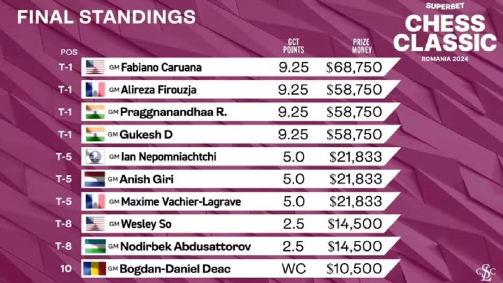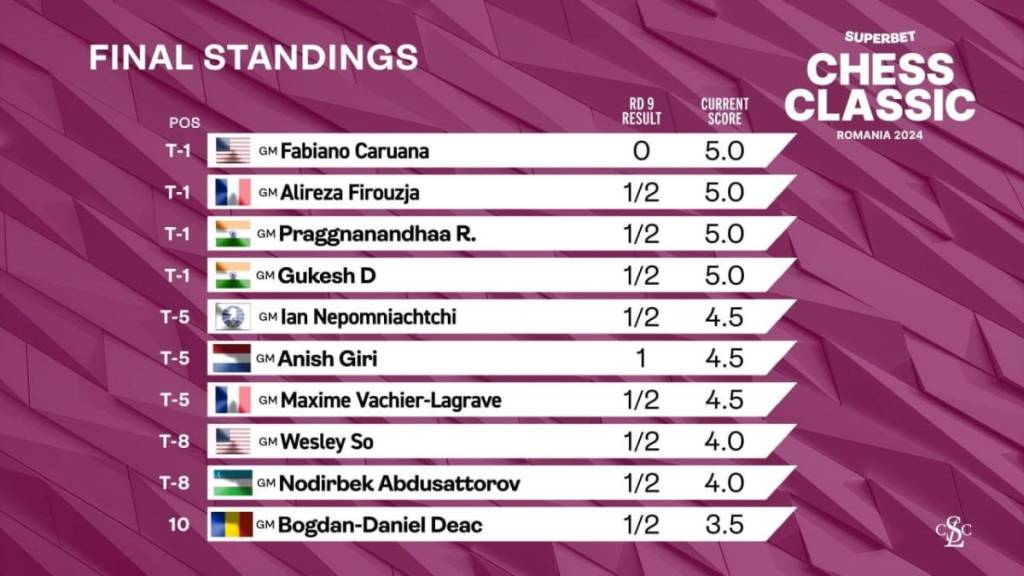 "Grand Chess Tour" seriyasidagi besh turnirning biri bo‘lgan "Superbet Chess Classic Romania" musobaqasi hamyurtimiz uchun garchi u qadar omadli kechmagan bo‘lsada, u 10 nafar mahoratli shaxmatchilar orasida 8 ta durang va 1 ta mag‘lubiyat evaziga 4 ochko jamg‘arishga muvaffaq bo‘ldi.