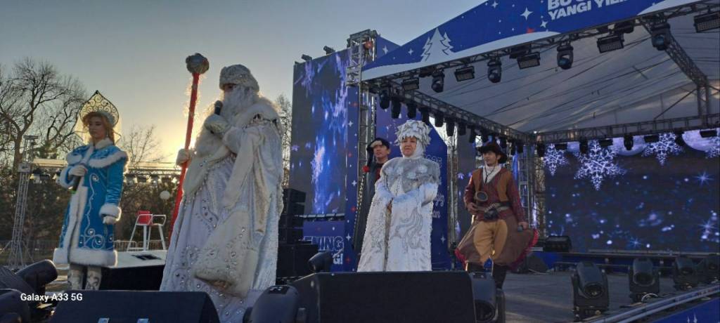 Ўзбекистон давлат ёш томошабинлар театри жамоаси томонидан Тошкент шаҳридаги Марказий арча майдонида Янги йил томошалари намойиш этилмоқда.