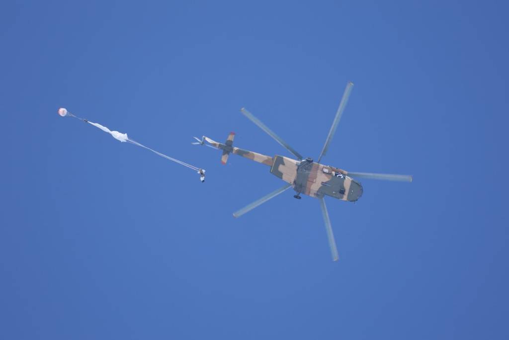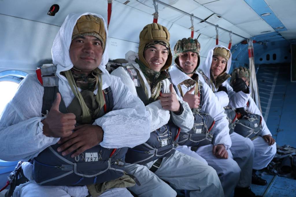Shu kabi nazorat tekshiruvlari, qolaversa, bungacha bo‘lgan yerdagi mashqlarda har jihatdan chiniqqan desantchilar start chizig‘ida vertolyot tomon harakatlanib, so‘ngra havoga ko‘tarildi. Harbiy xizmatchilar bo‘linmasi va o‘zlariga yuklatilgan jangovar vazifadan kelib chiqib, 600 va 1 200 metrgacha bo‘lgan balandlikdan parashyutlar bilan sakradi.