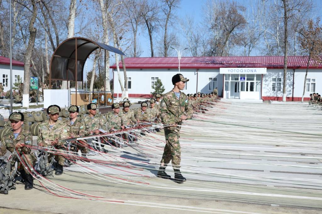 Mudofaa vazirligi havo-desant bo‘linmalari harbiy xizmatchilari Toshkent harbiy okrugidagi “Markaz” desantchilar tayyorlash bazasida parashyut bilan amaliy sakrash mashg‘ulotlarida ishtirok etdi.