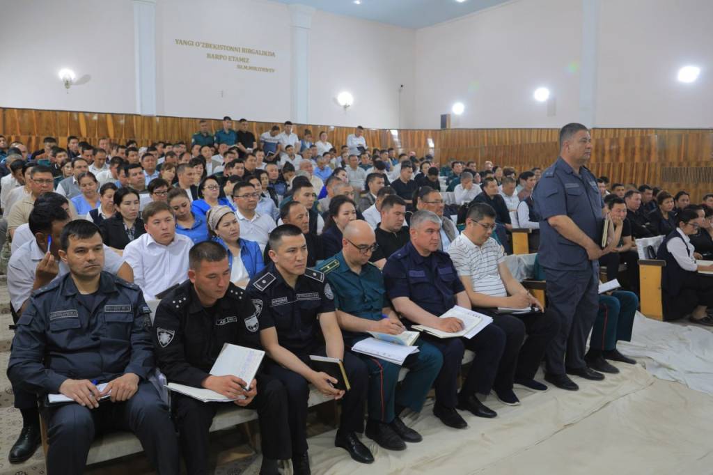 Затем участники мероприятия посетили махаллю «Маданият», отнесенную к «красной» категории исходя из криминогенной ситуации, где была рассмотрена деятельность «махаллинской семерки» и проведена оценка результативности работы по выявлению и анализу причин совершенных преступлений. Состоялось ознакомление с процедурами регистрации заявлений, сообщений и происшествий в электронной системе «E-material» дежурной части районного отдела внутренних дел.