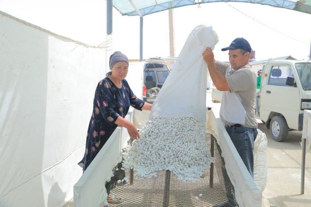 Заготовкой сырья в Музрабадском районе занимались ООО «Агропилла», 319 фермерских хозяйств и ряд домохозяйств. В среднем урожай с каждой коробки грены составляет по 60-65 килограммов коконов.