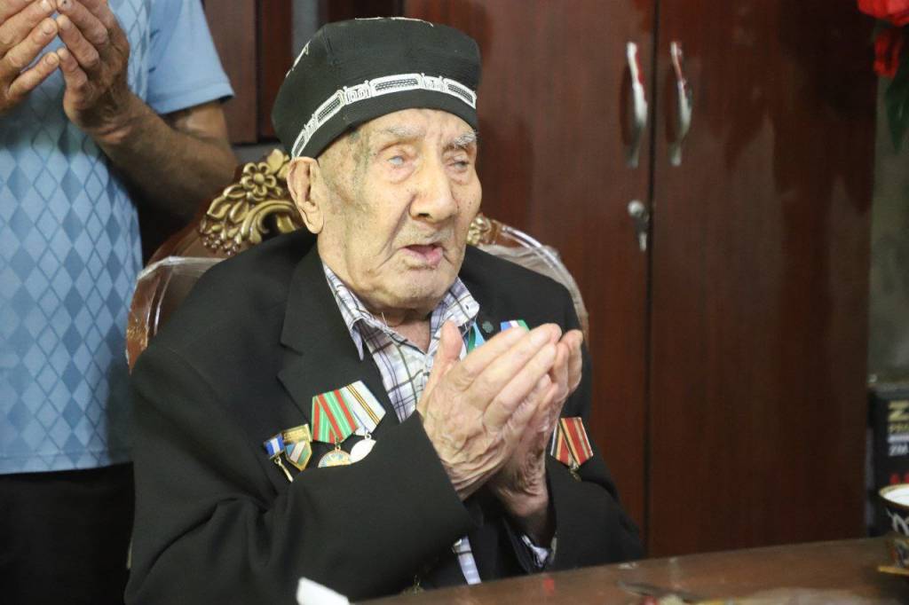 В доме ветерана Второй мировой войны Файзуллы Ходжиева, проживающего в сходе граждан махалли «Туркон» села Арабхона Бухарской области, очень оживленно. Его пришли навестить руководители хокимията области и района, правоохранительных органов, военнослужащие, учащиеся школы, соседи.