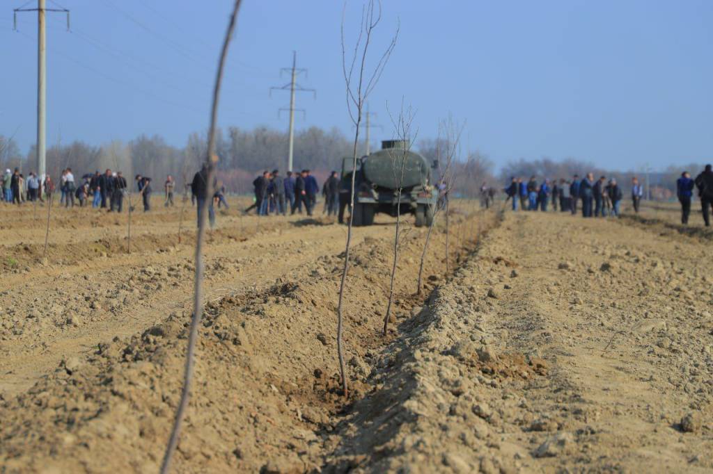 Жиззах вилоятида “Яшил макон” умуммиллий лойиҳаси доирасида “Ҳар бир фуқаро учун – бир дарахт” тамойили асосида Жиззах воҳасида жорий йилнинг баҳорги кўчат экиш мавсумида вилоят бўйича жами 9 миллион 843 минг 500 туп манзарали ва мевали дарахт ҳамда бута кўчатлари экилиши белгиланган эди.