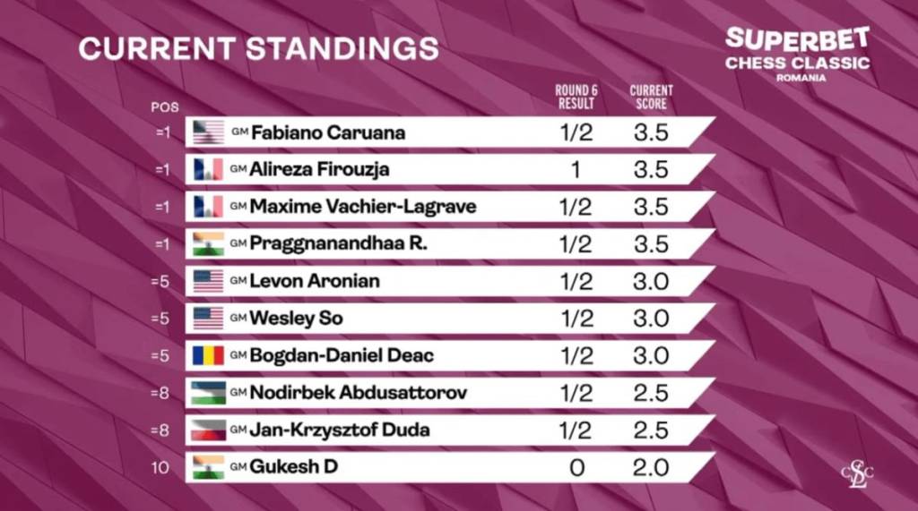 Mazkur turda o‘tkazilgan 5 ta “duel”ning 4 tasida murosa yo‘li tanlangan bo‘lsa, faqat oq donalarda Alireza Firuzdja va jahon chempioni Gukesh Dommaradju qarama-qarshiligidagi bahsda fransiyalik shaxmatchi ustunlikka ega bo‘ldi.