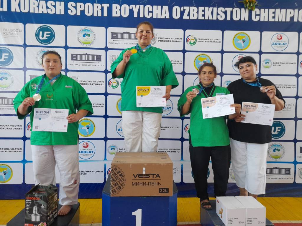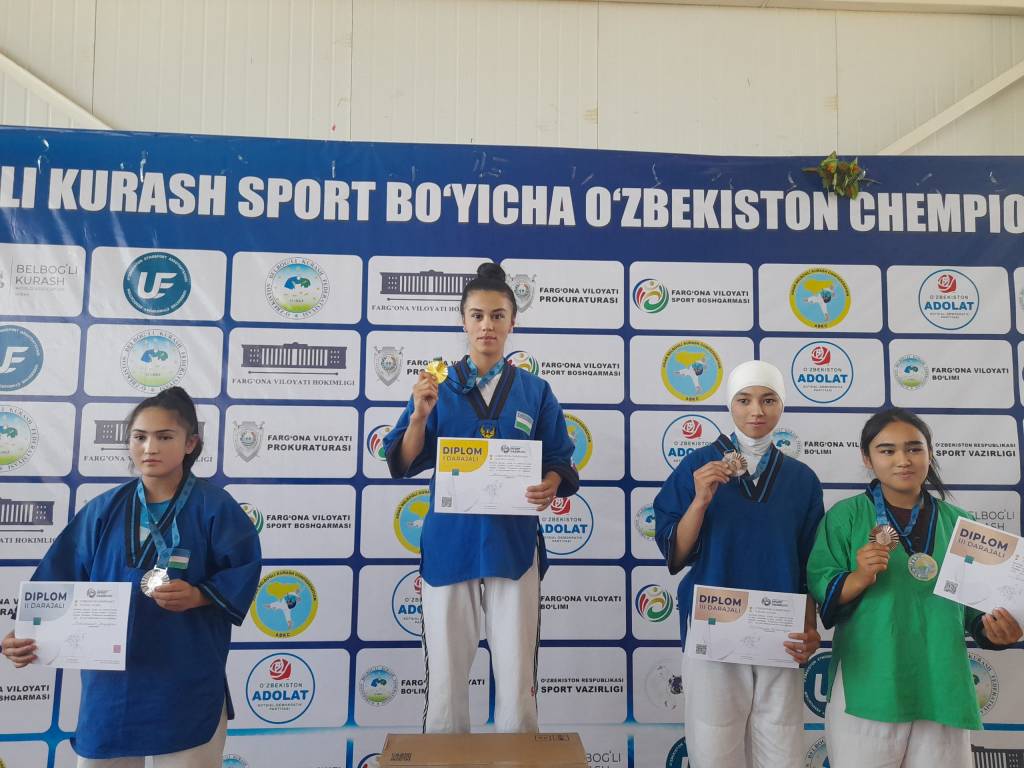 Ayollar orasidagi belbog‘li kurashning erkin yo‘nalishida Shahzoda Yigitaliyeva (Farg‘ona), Farangiz Abdunabiyeva (Toshkent sh.), Feruza Sobirova (Namangan), Dilafro‘z Mamajonova (Namangan), Sevara Sajenova (Qoraqalpog‘iston),Gulkumar Jannazarova (Toshkent v.), Sabohat Sheraliyeva (Farg‘ona) chempionga aylandi.