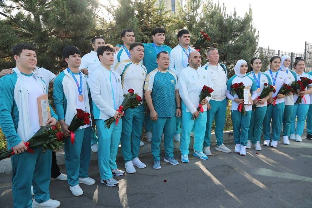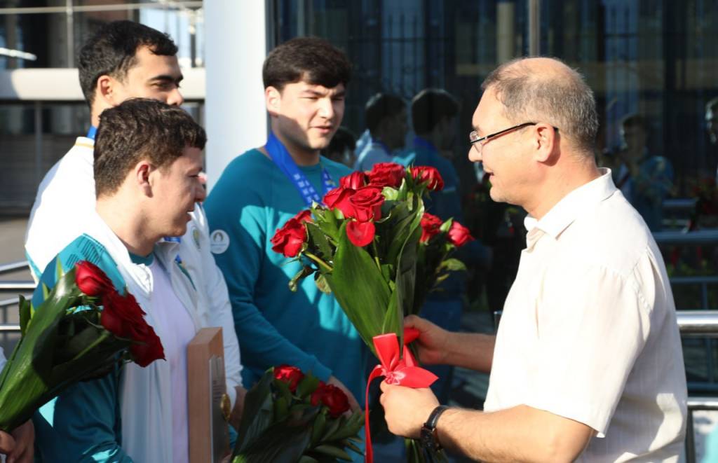 Осиё чемпионатида Ватан шаънини улуғлаган спортчиларга гуллар ва тегишли совғалар тақдим этилди.