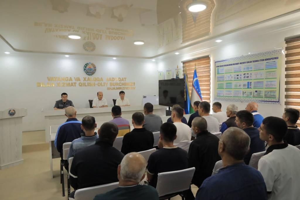В мероприятии приняли участие председатель суда Республики Каракалпакстан К. Тарихов и председатель судебной коллегии по уголовным делам А. Адилов. Основная цель встречи – повышение уровня правовых знаний осужденных, ознакомление их с правами и обязанностями, установленными законодательством, а также выявление и обсуждение существующих проблем.