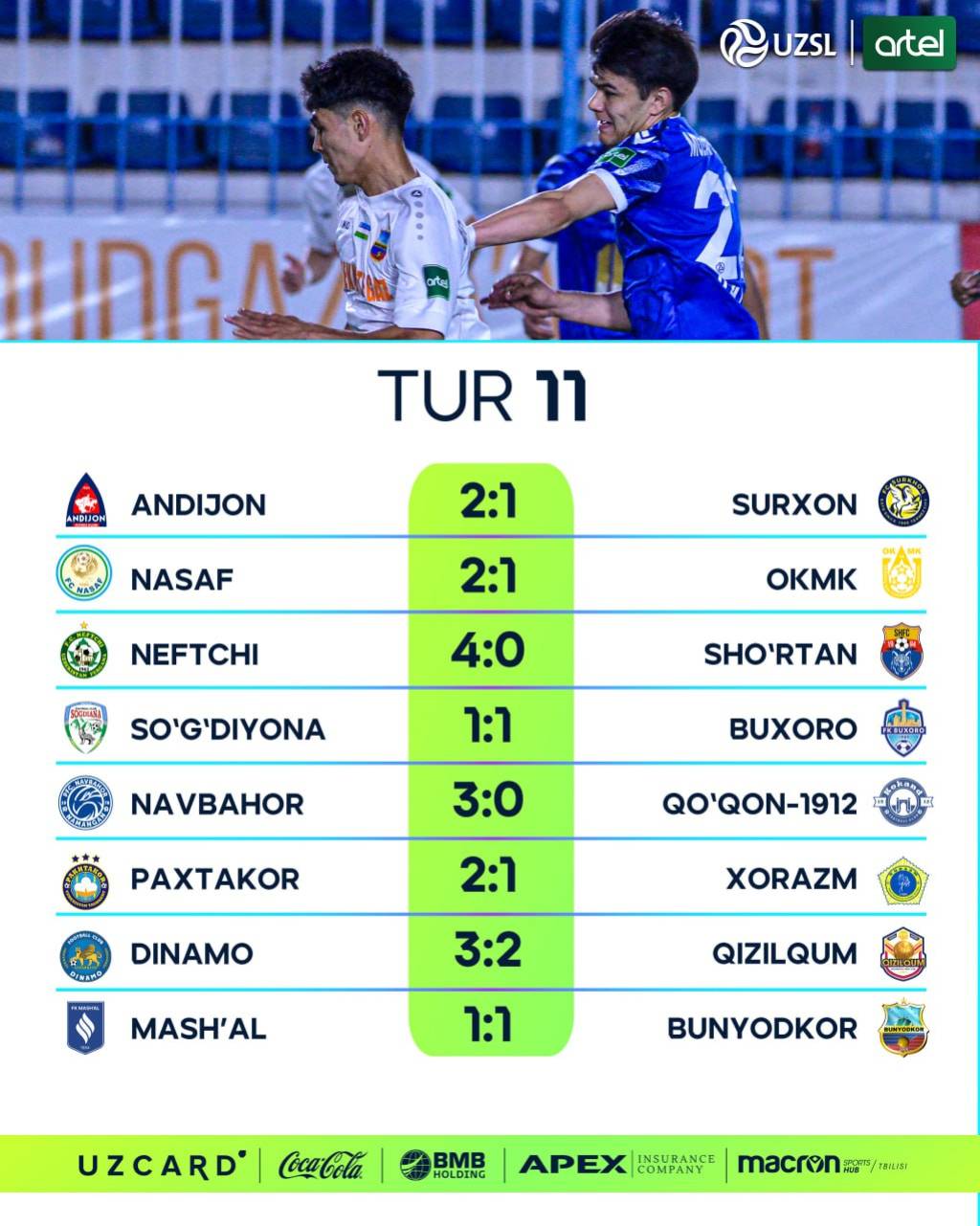 Футбол бўйича Ўзбекистон Суперлигасининг 11-турини "Машъал" ва "Бунёдкор" учрашуви якунлаб берди.