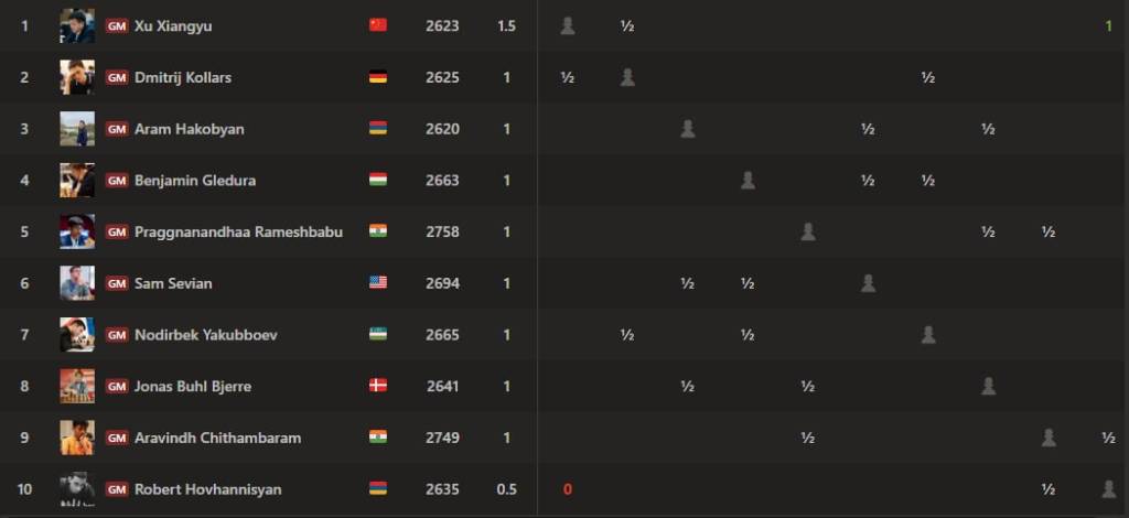 3-тур учрашувлари олдидан хитойлик Сянюй Сюй 1,5 очко жамғарган ҳолда етакчилик қилмоқда.