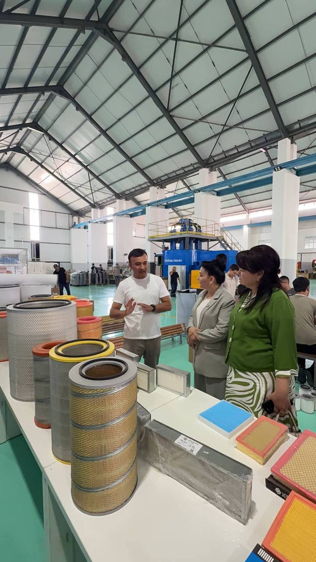 Депутат Законодательной палаты Олий Мажлиса, член фракции УзЛиДеП Азиза Аминова ознакомилась с деятельностью предприятия Universal Filter, расположенного в промышленной зоне в Навои, и созданными на нем условиями для работников.