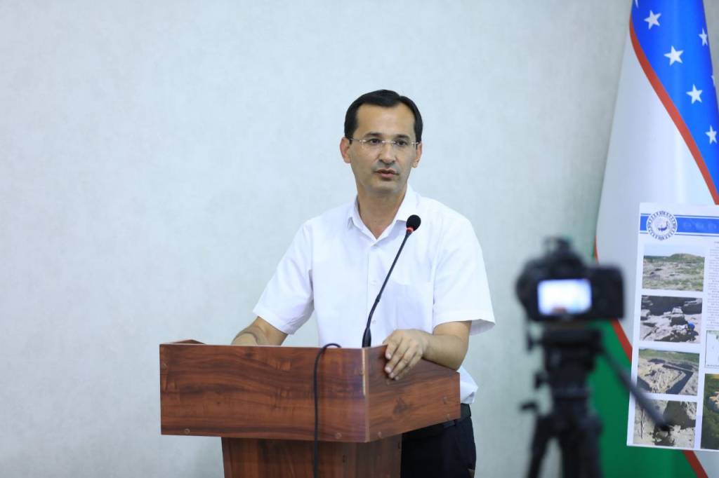 Директор Самаркандского института археологии Муминхон Саидов доложил о проводимых раскопках, целью которых является определение местоположения дворца Амира Темура Куксарой на одноименной площади в Самарканде, а также о результатах исследования памятников Куктепа и Афросиаб.