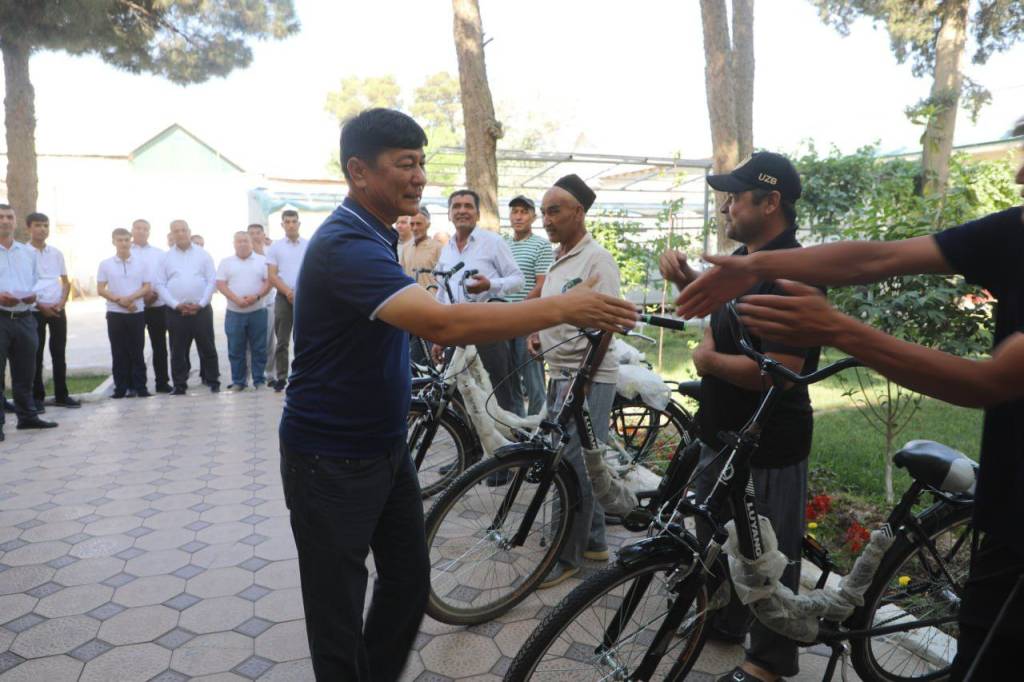 В честь 5 июня – Всемирного дня окружающей среды – 8 работникам Сурхандарьинской области, неустанно трудящимся в службе благоустройства и санитарии, были вручены велосипеды – подарок Министерства экологии, охраны окружающей среды и изменения климата.