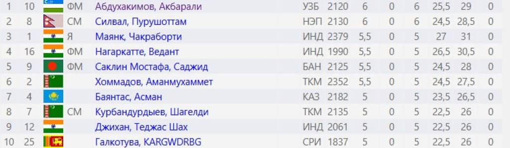 По итогам 7 туров он обыграл представителей Индии, Казахстана, Туркменистана и Шри-Ланки и стал победителем с 6 очками.