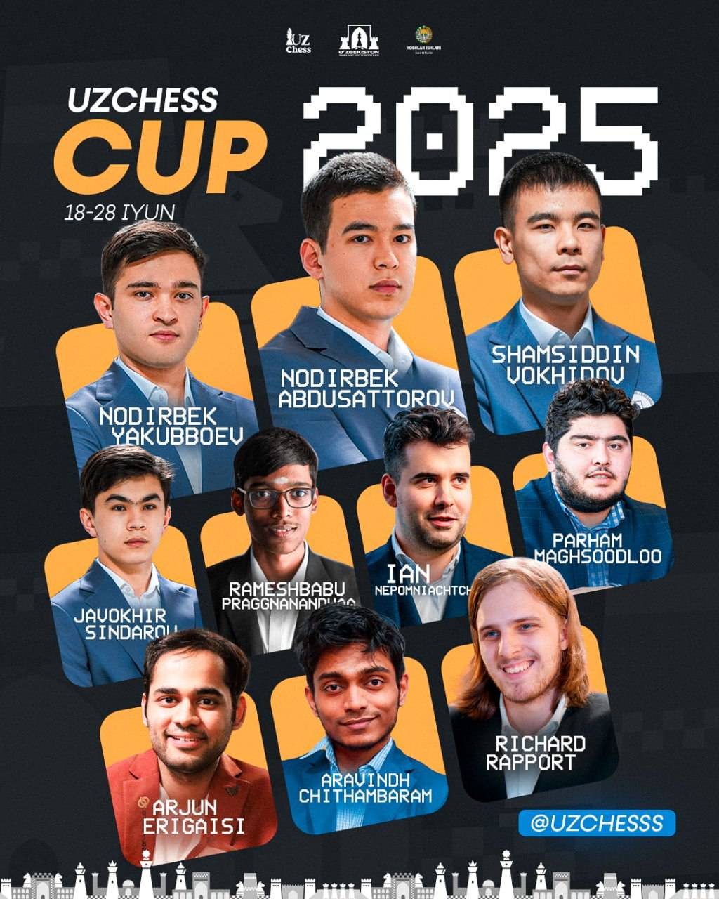 Бугун, 27 июнь куни пойтахтимизда мукофотжамғармаси 105 минг АҚШ долларидан иборат халқаро турнирнинг тўққиз кундан бери шиддатли курашлари, бетакрор шахмат комбинациялари билан “ақл жанги”ишқибозларига олам-олам тафаккур завқини бағишлаган "UzChess Cup-2025" турнирининг сўнгги тур ўйинлари бўлиб ўтади.