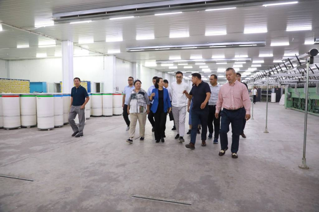 Члены делегации в сопровождении хокима района посетили предприятие «Боёвут Cotton Textile», созданное на основе китайских инвестиций. Оснащенный современным оборудованием производственный комплекс специализируется на переработке хлопкового сырья и выпуске полуфабрикатов текстильной продукции. На предприятии работают местные и китайские специалисты. Часть произведенной продукции реализуется на внутреннем рынке, другая –экспортируется в Китай, Россию, Турцию, Иран.