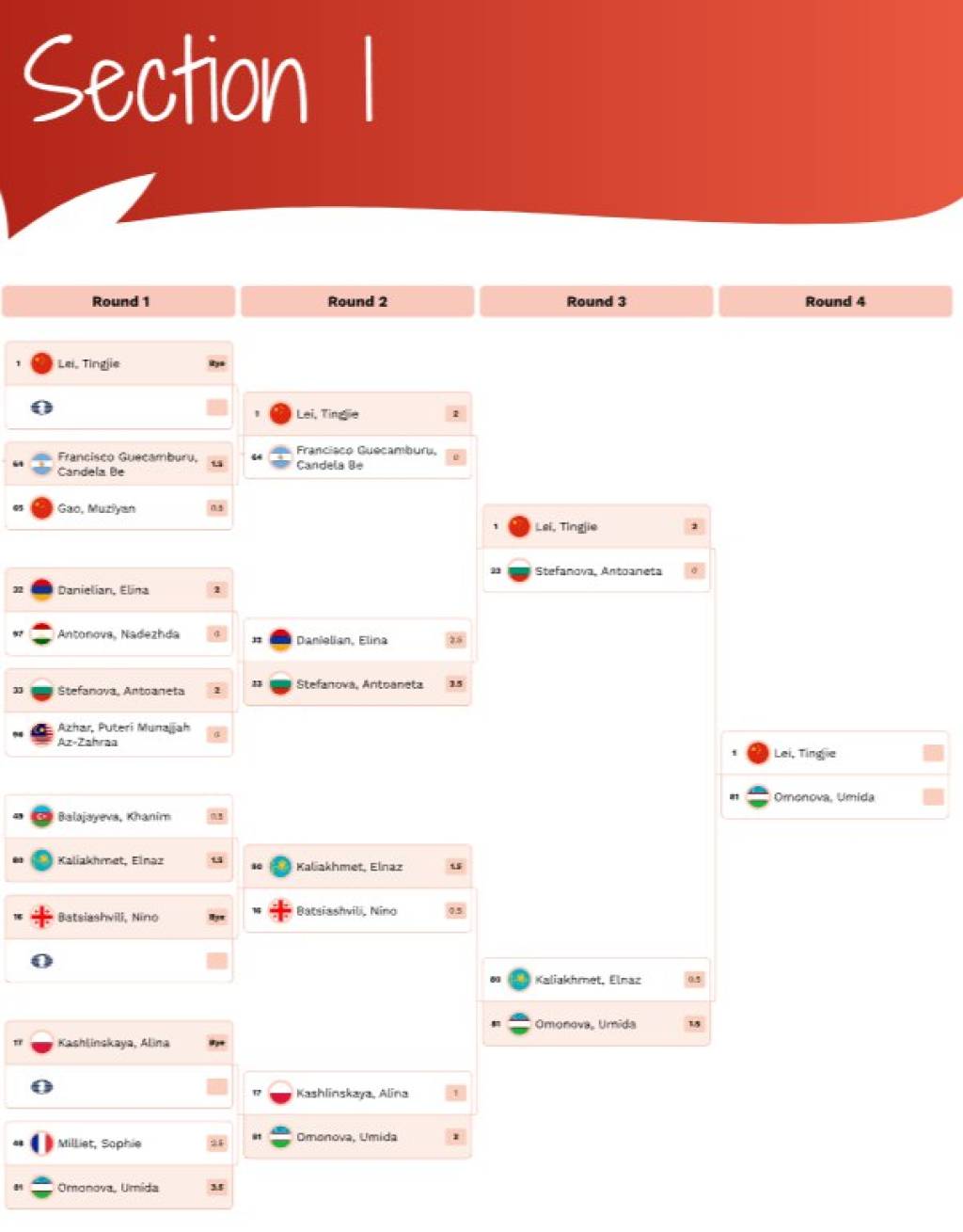 Endi Umida Omonova 16 iyul kuni o‘tadigan 4-turda xitoylik grossmeyster Ley Tinsze bilan kuch sinashadi.