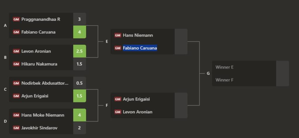 Бугун, 18 июль куни мукофот жамғармаси 750 минг АҚШ долларидан иборат турнирнинг ғолиблик йўлида Ҳанс Ниеманн Фабино Каруана билан, Аржун Эригаиси Левон Аронян билан финал йўлланмаси учун курашади.