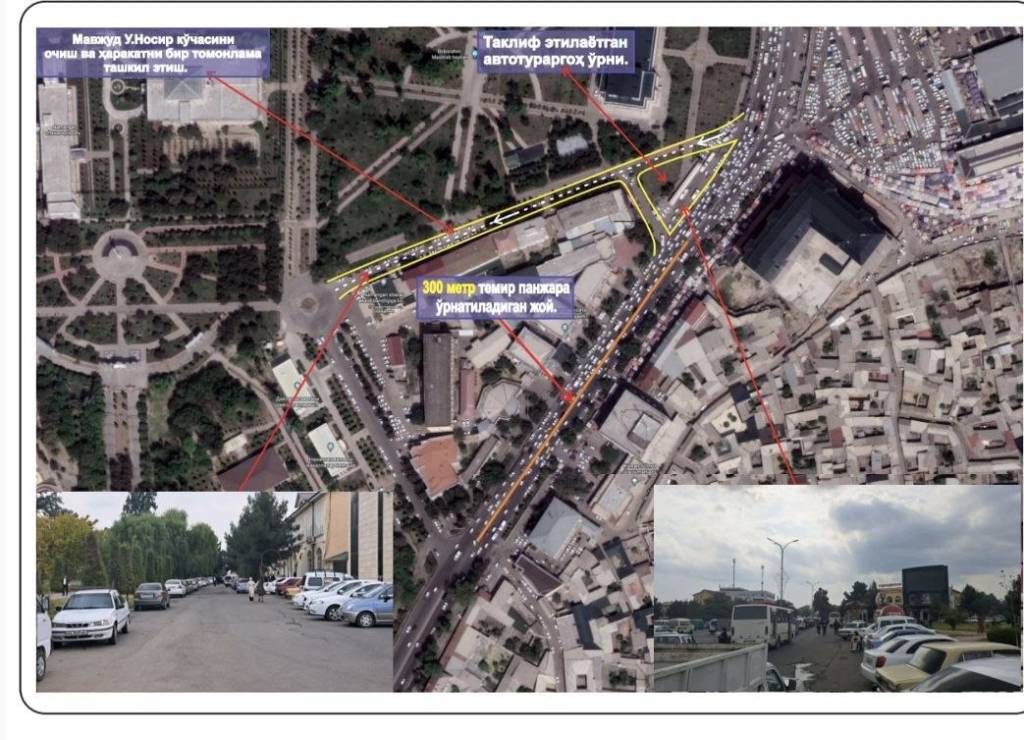 Namangan shahrida mazkur topshiriqlar ijrosini ta’minlash maqsadida bir qator chora-tadbirlar amalga oshirilmoqda. Jumladan, viloyat IIB yo‘l harakati xavfsizligi boshqarmasi taklifiga asosan shahar hokimligi tomonidan eng gavjum maskanlardan bir Alisher Navoiy ko‘chasiga tutash Usmon Nosir ko‘chasini ochish bo‘yicha sa’y-harakatlarga kirishildi.