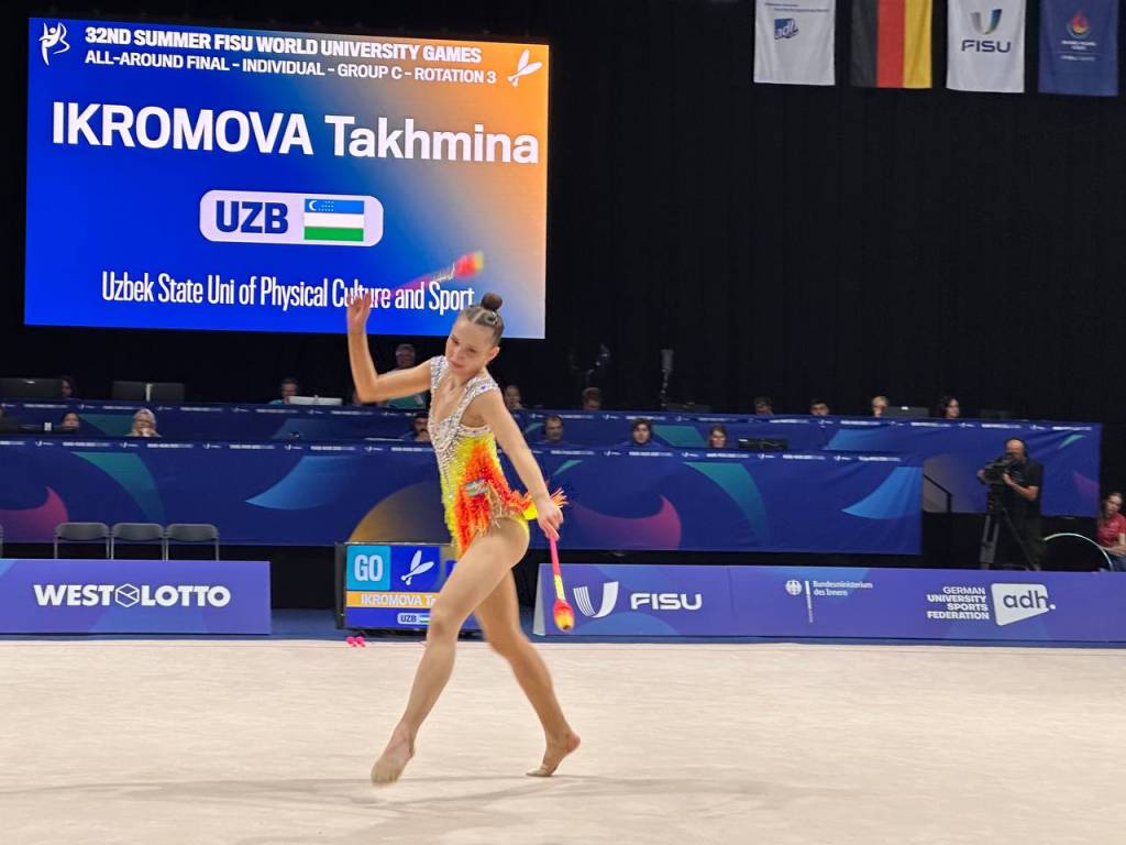 Жорий йилнинг 16-27 июль кунлари Германия мезбонлигида ўтган XXXII Бутунжаҳон ёзги Универсиада ўйинларида Тахмина Икромова спортчиларимиз орасида йўлчи юлдуз каби порлади. У ҳалқада ва тасмада машқ бажаришда олтин, булава ҳамда кўпкураш баҳсларида кумуш, жами 4 та медалга эга чиқди. Унинг ушбу медаллари натижасида бадиий гимнастика бўйича умумжамоа ҳисобида Ўзбекистон термаси иккинчи поғонадан жой олди.