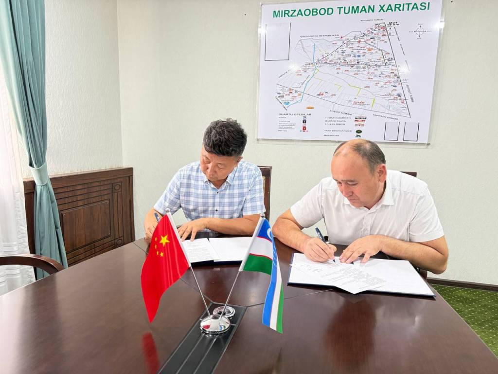Sirdaryo viloyatining Mirzaobod tumanida Xitoyning “Xinjiang Sanwei Intelligent Control Agricultural Technology Co., Ltd.” kompaniyasi bilan 22 million AQSH dollarlik “Aqlli sug‘orish tizimi” loyihasi bo‘yicha anglashuv memorandumi imzolandi.