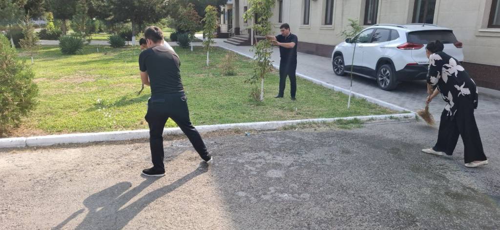 Eng ulug‘, eng aziz bayramimizning o‘ttiz to‘rt yilligi arafasida tashkil etilgan ikki kunlik hasharda “Vatan uchun, millat uchun, xalq uchun!” degan ulug‘vor g‘oyani diliga joy qilgan Byuro xodimlari tomonidan tashkilotlarning binosi va uning atroflari, hududlarda keng ko‘lamli ozodalik va ko‘kalamzorlashtirish ishlari amalga oshirildi. Qolaversa, nihol va gul ko‘chatlari o‘tqazilib, mavjud yashil hududlarga ham chiroyli ko‘rinish berildi.